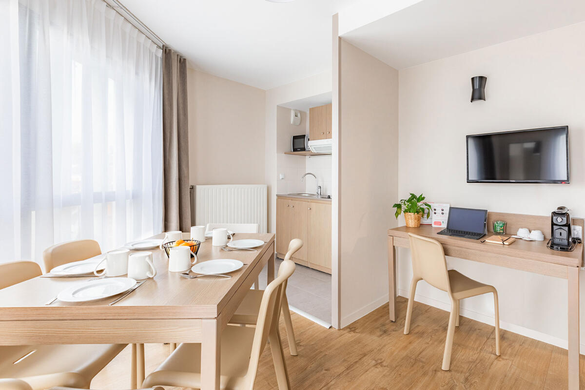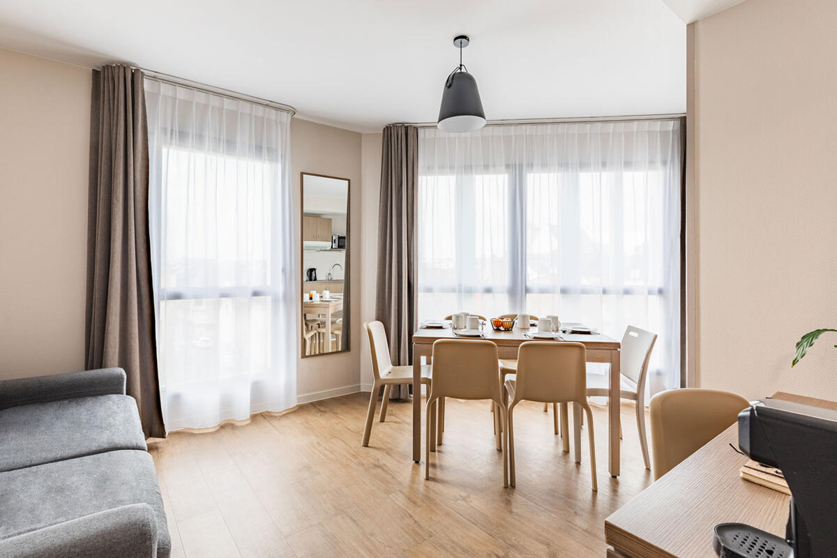 L'appart'hôtel Angers propose des appartements spacieux avec une capacité d'accueil jusqu'à 6 personnes. Ces appartements sont dotés de plusieurs chambres, d'une salle de séjour séparée et d'une kitchenette entièrement équipée.
