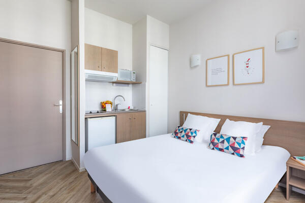 Ihr Aparthotel Reims bietet Ihnen elegant eingerichtete Studios und Apartments im Stadtzentrum. Vom Studio für 2 Personen bis zum geräumigeren 2-Zimmer-Apartment für bis zu 5 Personen finden Sie hier dank der Ihnen zur Verfügung gestellten Ausstattung Ruhe und Komfort. Sie schlafen in hochwertiger Bettwäsche und haben außerdem Zugang zu einer voll ausgestatteten Küche mit Mikrowelle, Kochplatten, Kühlschrank, Kaffeemaschine und Küchenutensilien. Die Apartments verfügen außerdem über einen Geschirrspüler sowie einen Wohnbereich mit Schlafsofa.