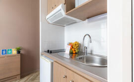 Die Einrichtung verfügt über insgesamt 110 Studios und Apartments, von denen 4 für Personen mit eingeschränkter Mobilität ausgestattet sind.