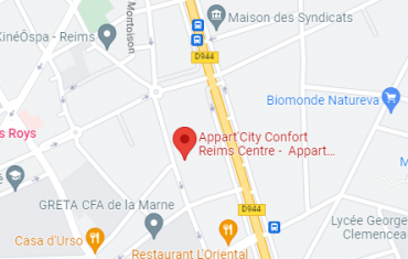 Erreichen Sie schnell Ihr Aparthotel Reims Centre, das 1,5 km vom TGV-Bahnhof entfernt liegt. Die Bushaltestelle "Jamot" (Linie 3) befindet sich direkt vor Ihrem Hotel. Wenn Sie mit dem Auto unterwegs sind, nehmen Sie die Ausfahrt "Reims Centre" von den Autobahnen A1 oder A2.