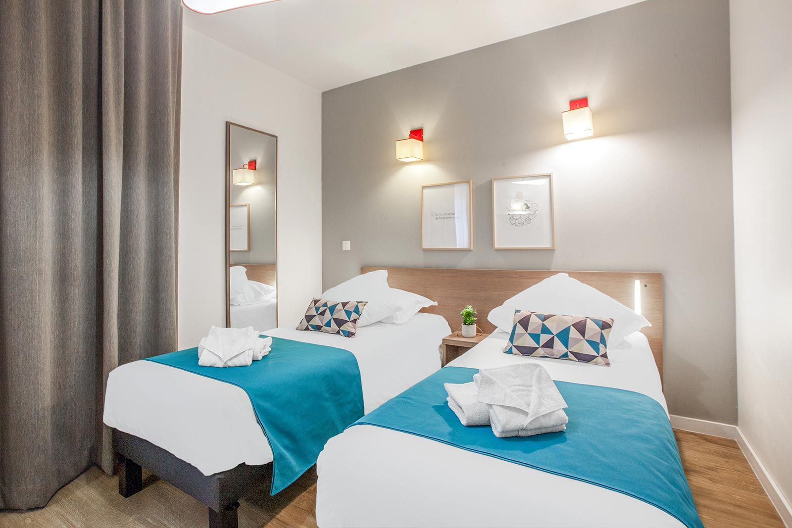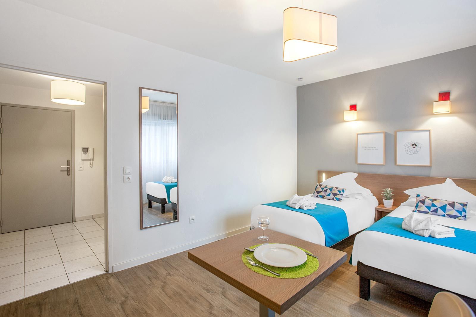 Nous avons utilisé votre formule de part sa proximité avec la résidence de mon fils, tres déçu par la literie, inconfortable au possible, le matelas fait une cuvette au milieu ...! Les lits doubles sont en 80 et non 90, trop etroit ! Pas de bouilloire ! Aucun plateau d'accueil avec thé ou café ! Accueil réception limite agréable quand nous sommes venus recuperer nos valises en bagagerie. Et chose encore plus anormale lors de notre arrivée au pied de la residence c'est un sdf qui etait devant l'entrée dans la rue qui nous a donné le code d'accès 3184 pour l'ouverture du hall d'entré en echange d'une pièce et l'ascenseur est en accès libre quel que soit l'heure ou nous rentrions le soir! Nous en avons fait la remarque à la reception et la réponse est originale " le sdf est la depuis tres longtemps c'est comme s'il faisait partie de l'hotel donc il connait le code et renseigne les clients" je vous laisse apprecier ....! Nuisance sonore la nuit, et le matin lors du menage, le personnel se lache un peu en tonalité ! On vient pour dormir un peu. Et enfin la mauvaise odeur du studio lors de notre arrivée ! Nous avons du laisser les fenetres ouverte jusqu'à notre retour le soir et vaporiser la piece de mon parfum (pas du airwick) pour dormir sans pince à linge ! Nous ne reviendrons pas dans votre établissement ça c'est une certitude ! Dommage on aurait pu etre des clients réguliers lors de nos sejours familiaux tous les 2 mois ! Cordialement