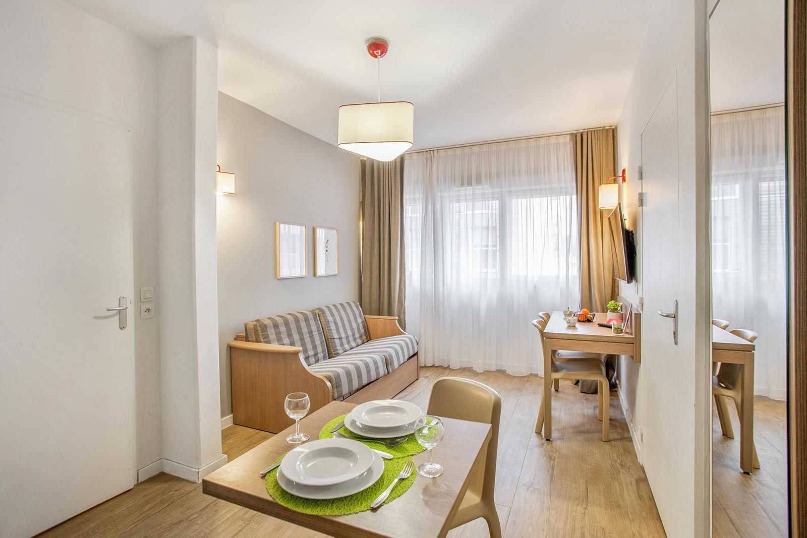Legen Sie Ihr Gepäck in eine der Unterkünfte Ihres Apart-Hotels Annemasse Centre-Pays de Genève, die zwischen Studios für 2 Personen und 4-Zimmer-Apartments für bis zu 4 Personen aufgeteilt sind. Alle sind komfortabel möbliert und in hellen und klaren Farben dekoriert für einen erholsamen Aufenthalt. Leben Sie in vollkommener Unabhängigkeit dank der voll ausgestatteten Küche, die Ihnen zur Verfügung steht, einschließlich Herdplatten, Mikrowelle, Kühlschrank und Geschirrset.