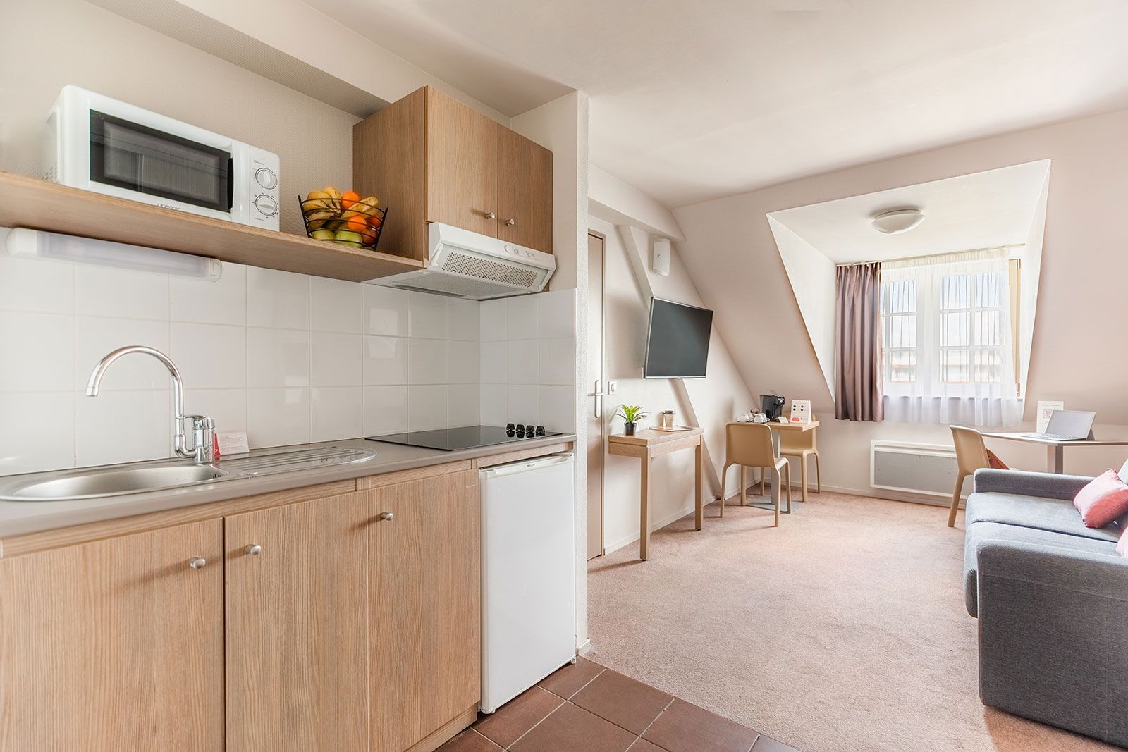 Ihr Aparthotel Reims bietet Ihnen elegant eingerichtete Studios und Apartments im Stadtzentrum. Vom Studio für 2 Personen bis zum geräumigeren 2-Zimmer-Apartment für bis zu 5 Personen finden Sie hier dank der Ihnen zur Verfügung gestellten Ausstattung Ruhe und Komfort. Sie schlafen in hochwertiger Bettwäsche und haben außerdem Zugang zu einer voll ausgestatteten Küche mit Mikrowelle, Kochplatten, Kühlschrank, Kaffeemaschine und Küchenutensilien. Die Apartments verfügen außerdem über einen Geschirrspüler sowie einen Wohnbereich mit Schlafsofa.