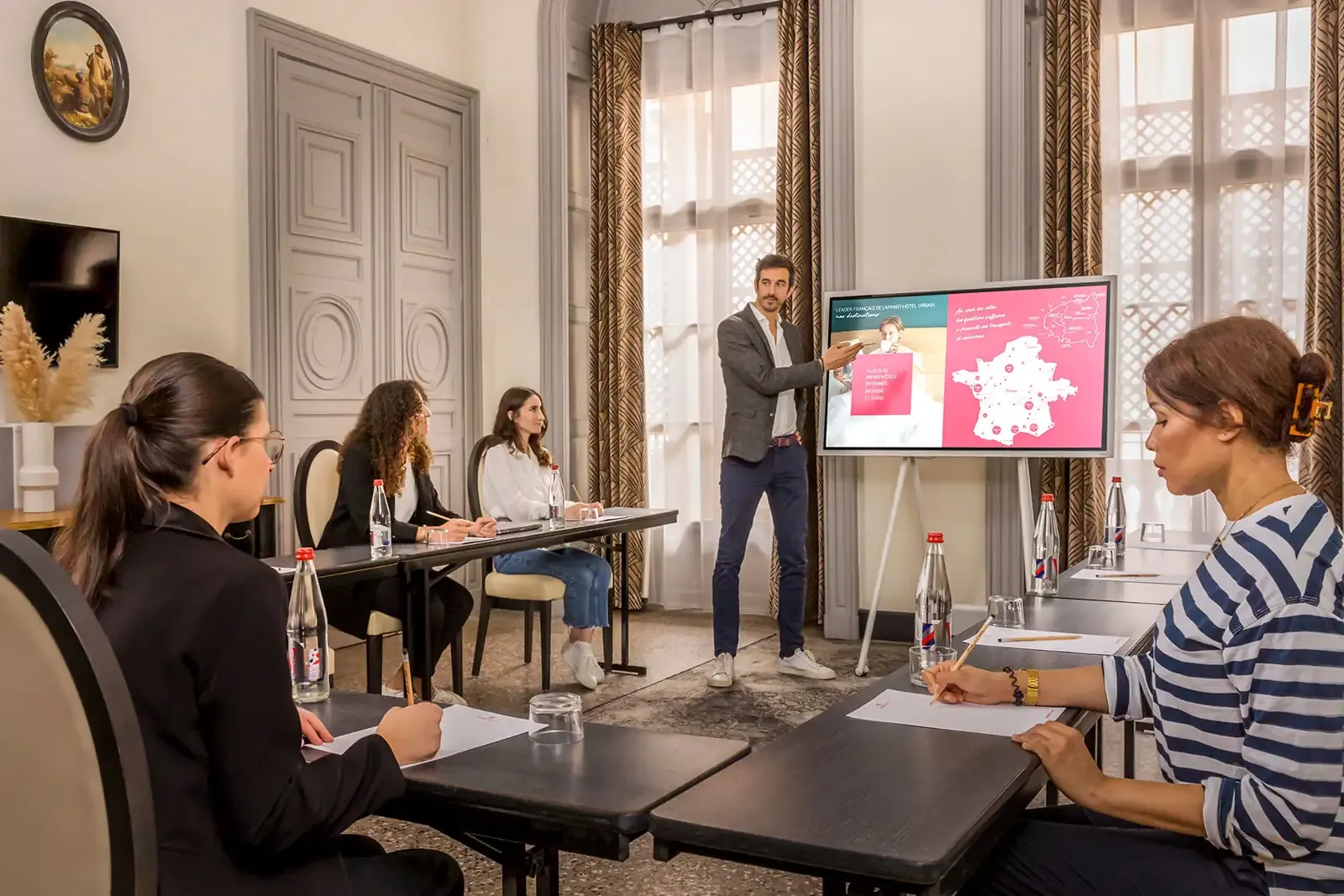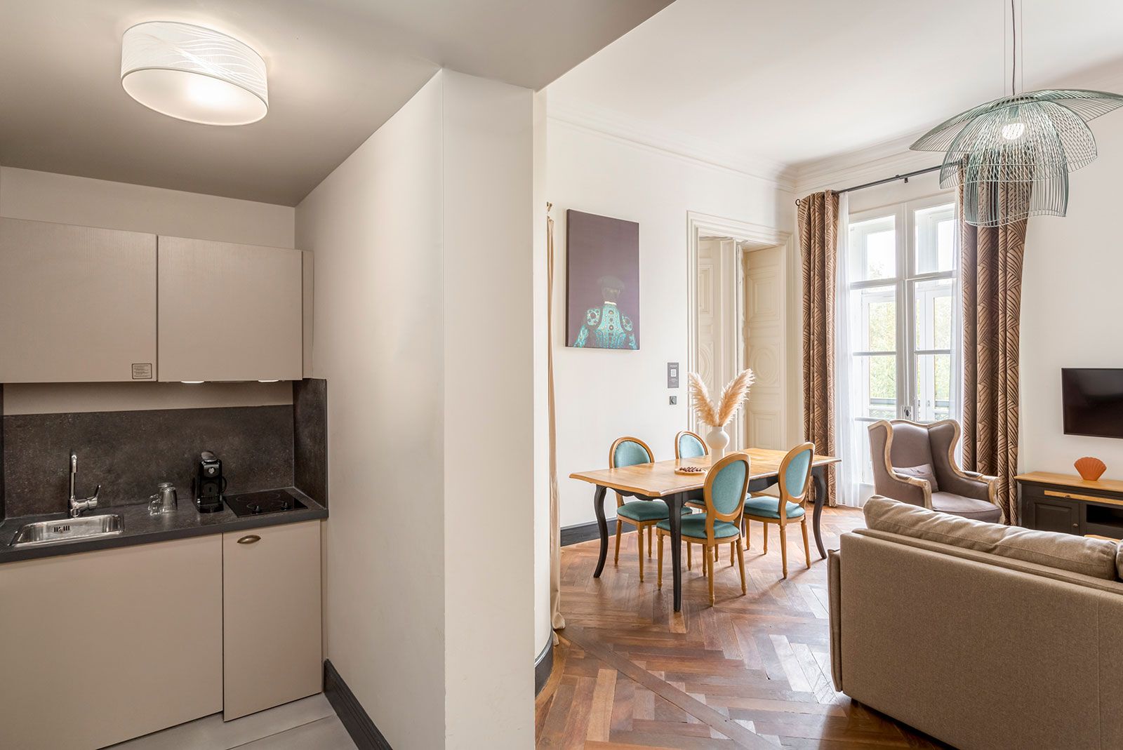 Ein 68 m² großes Privatapartment steht Ihnen ebenfalls zur Verfügung, um in einem eleganten und intimen Rahmen in kleinerem Kreis zu tagen. Mit einem Tisch für bis zu 10 Personen und einem Balkon ist es der ideale Ort für eine private Veranstaltung, einen Showroom, eine Cocktailparty usw. Ein Catering-Angebot und ein professionelles Team ermöglichen es Ihnen, Ihre Veranstaltung nach Maß zu gestalten. Entdecken Sie unser Seminarangebot.