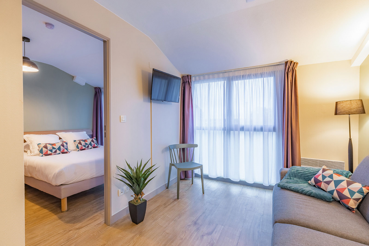 Alle Unterkünfte sind komfortabel eingerichtet und bereit, Sie zu empfangen. Sie sind aufgeteilt in Studios für 2 bis 3 Personen, 2-Zimmer-Wohnungen, die für Familien oder kleine Gruppen von 4 Personen geeignet sind, und schließlich "Familien"-3-Zimmer-Wohnungen für bis zu 6 Personen. Finden Sie die Unterkunft, die sich an Ihre Bedürfnisse anpasst und erleben Sie einen Aufenthalt in völliger Freiheit. Alle Unterkünfte verfügen über eine Arbeitsecke und eine voll ausgestattete Küche mit Kochplatten, Kühlschrank, Mikrowelle, Kaffeemaschine oder Wasserkocher sowie einen Geschirrspüler, der in den Wohnungen installiert ist.