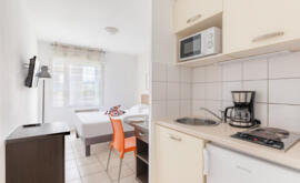 Wählen Sie zwischen funktionellen Studios für 1 bis 2 Personen oder geräumigeren 2-Zimmer-Wohnungen für bis zu 4 Personen. Hübsch dekoriert und komfortabel eingerichtet, werden Sie sich hier wie zu Hause fühlen. Nutzen Sie alle Einrichtungen in Ihrer Unterkunft, wie z. B. den Arbeitsbereich oder die voll ausgestattete Küche, nach Belieben. Sie werden über alle notwendigen Haushaltsgeräte verfügen, um Ihre hausgemachten Mahlzeiten zuzubereiten.