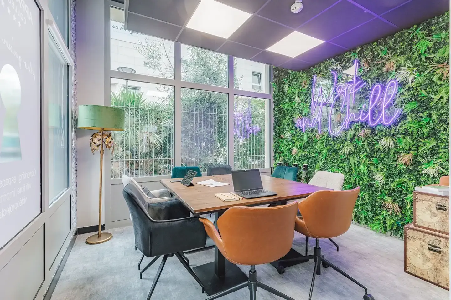 - Digitale Ausstattung und kollaborative Tools: Büromaterial, kostenloses Highspeed-WLAN (100 % Glasfaser), Videoprojektionssysteme, Flipcharts