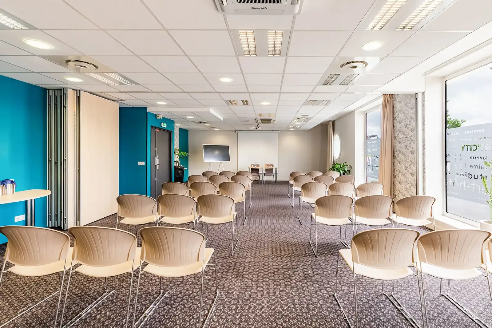 Genießen Sie für Ihre Veranstaltungen, Seminare, Tagungen, Kongresse und Incentives eine komfortable Umgebung vor den Toren von Paris im Aparthotel Paris Le Bourget. Übernachten Sie gegenüber dem Flughafen Paris-Le Bourget und dem Messegelände und entscheiden Sie sich für einen maßgeschneiderten Service. Es stehen Ihnen 3 lichtdurchflutete Tagungsräume mit einer Gesamtfläche von 160 m² zur Verfügung, die mit der gesamten erforderlichen Ausstattung ausgestattet sind. Ihre Gäste profitieren von einer kostenlosen und unbegrenzten Internetverbindung sowie Zugang zum Parkplatz. Gönnen Sie sich nach Ihrem Seminar einen Moment der Entspannung und besuchen Sie das Luft- und Raumfahrtmuseum. Um Ihnen die Anreise zu erleichtern, befindet sich das Aparthotel gegenüber dem Flughafen Paris-Le Bourget.