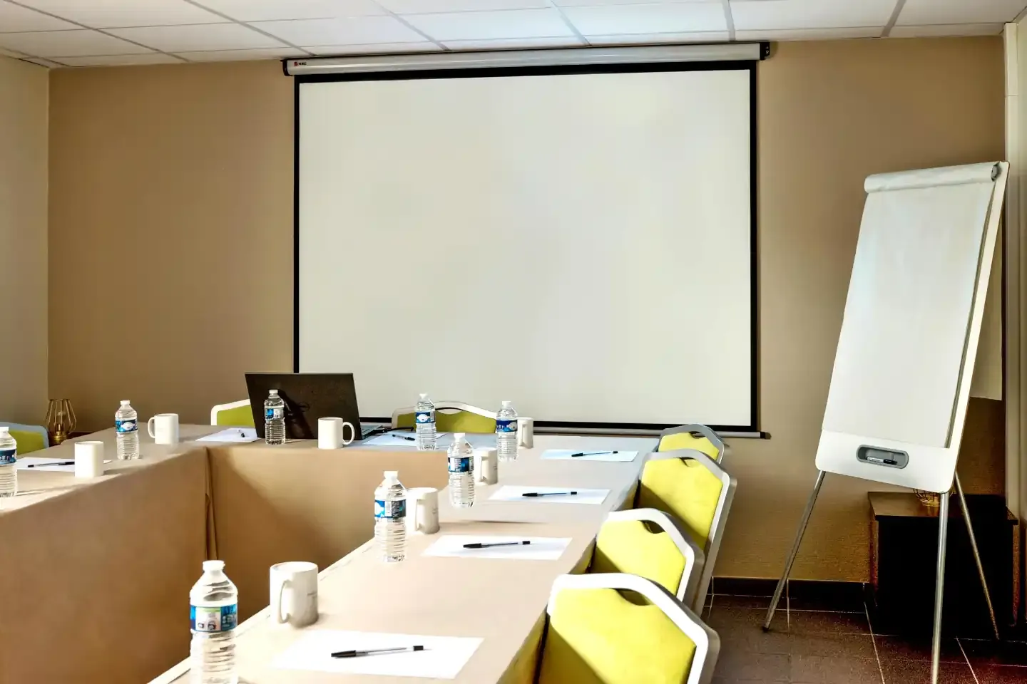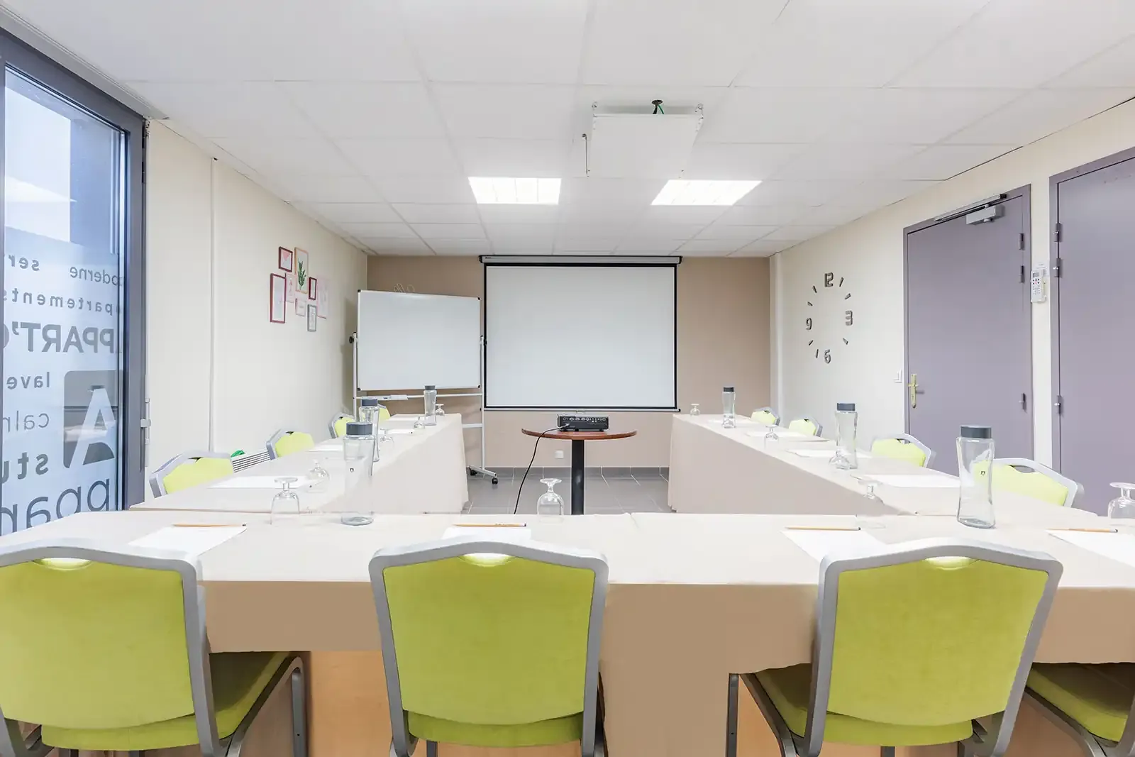 Organisieren Sie Ihre Seminare, Incentives, Tagungen und Schulungen im Aparthotel Montélimar und profitieren Sie von einem maßgeschneiderten Service. Wir garantieren Ihnen die Organisation Ihrer beruflichen Veranstaltung von A bis Z. Versammeln Sie Ihre Gäste in unserem 35 m² großen Saal, der mit der notwendigen Ausstattung versehen ist und Tageslicht bietet. Auf Wunsch stellen wir Ihnen einen Beamer, eine Leinwand und einen Flipchart zur Verfügung. Sie profitieren von einem kompletten À-la-carte-Angebot, das Unterkunft, Tagungsraum und Verpflegung umfasst.