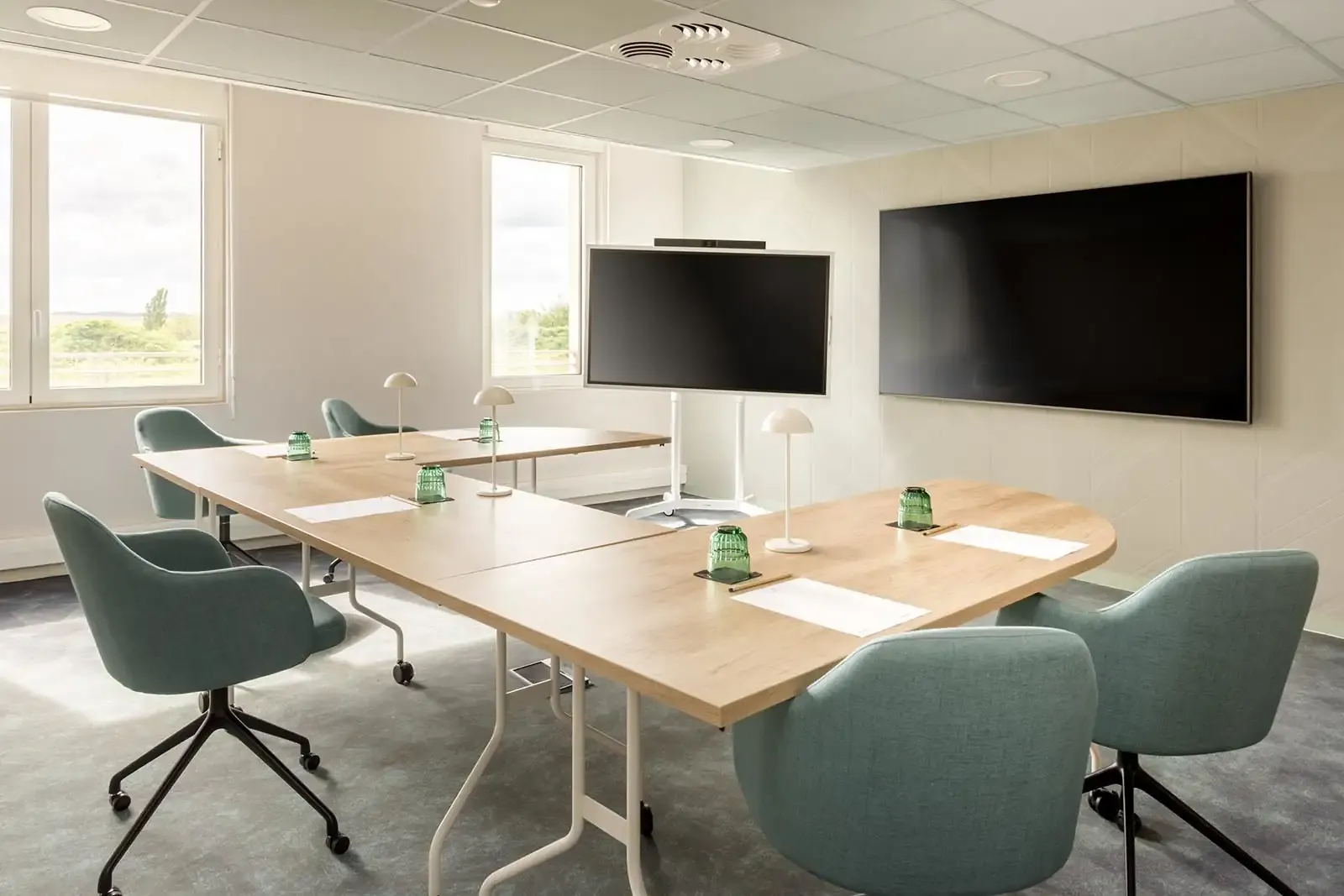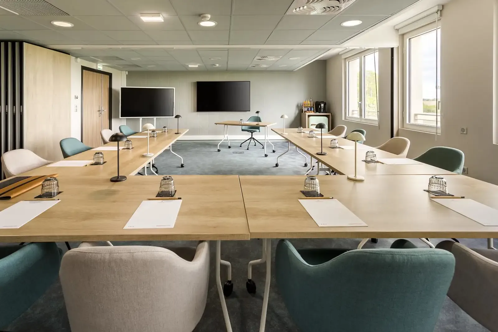 Wählen Sie für Ihre Seminare, Tagungen und Schulungen in der Nähe von Paris das Aparthotel Paris Roissy CDG Airport und seine maßgeschneiderten Dienstleistungen. Empfangen Sie Ihre Gäste in unserem 106 m² großen Tagungsraum, der in 4 Räume unterteilt werden kann und über große Fensterfronten verfügt. Unsere gemütlichen und einladenden Seminar- und Coworking-Räume sind harmonisch mit modernen und technologischen Hilfsmitteln ausgestattet und bieten die perfekte Atmosphäre für Meetings mit bester Internetverbindung.