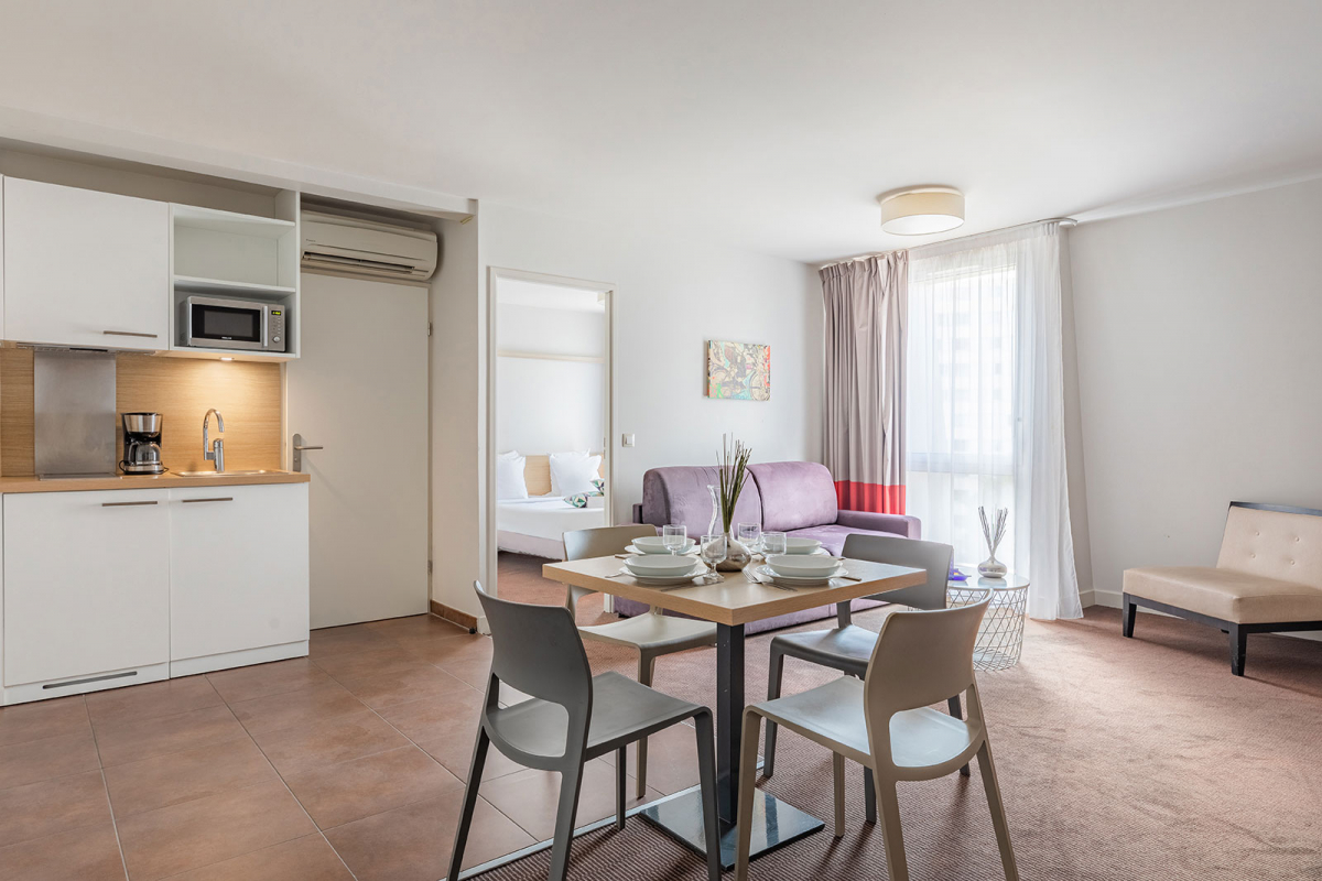 The hotel has 140 studios and apartments, including 5 equipped for people with reduced mobility.
