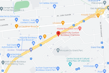 Bordeaux Saint-Jean TGV station is a 20-minute streetcar ride away. Take line C to the "Ravezies-Le Bouscat" stop, just a few meters from your Bordeaux-Chartrons apartment-hotel. Alternatively, take the A10 motorway, exit 4 Bordeaux Centre. Bordeaux-Mérignac airport is 16 km away.