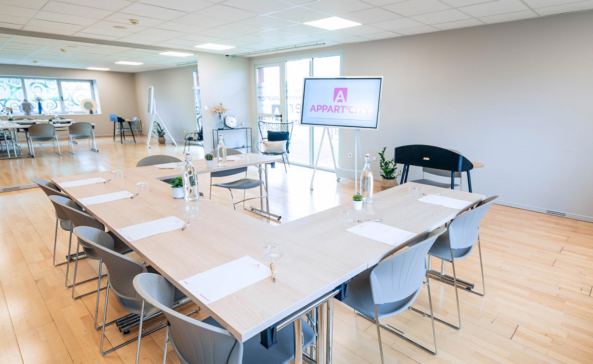 For all your corporate events, meetings, conventions, incentives, corporate cocktails or team building, the appart-hotel Toulouse Aéroport Cornebarrieu offers a large seminar room (123 m²), open to the outside, with equipment such as a video projector and flipchart (on request). In partnership with restaurants, sit-down or buffet meals can also be organized to suit your requirements. For a staff outing, you can visit La Cité de l'Espace, the Aéroscopia museum or improve your swing on the nearby Seilh golf course. Discover our seminar offer Find out more about our seminar offer
