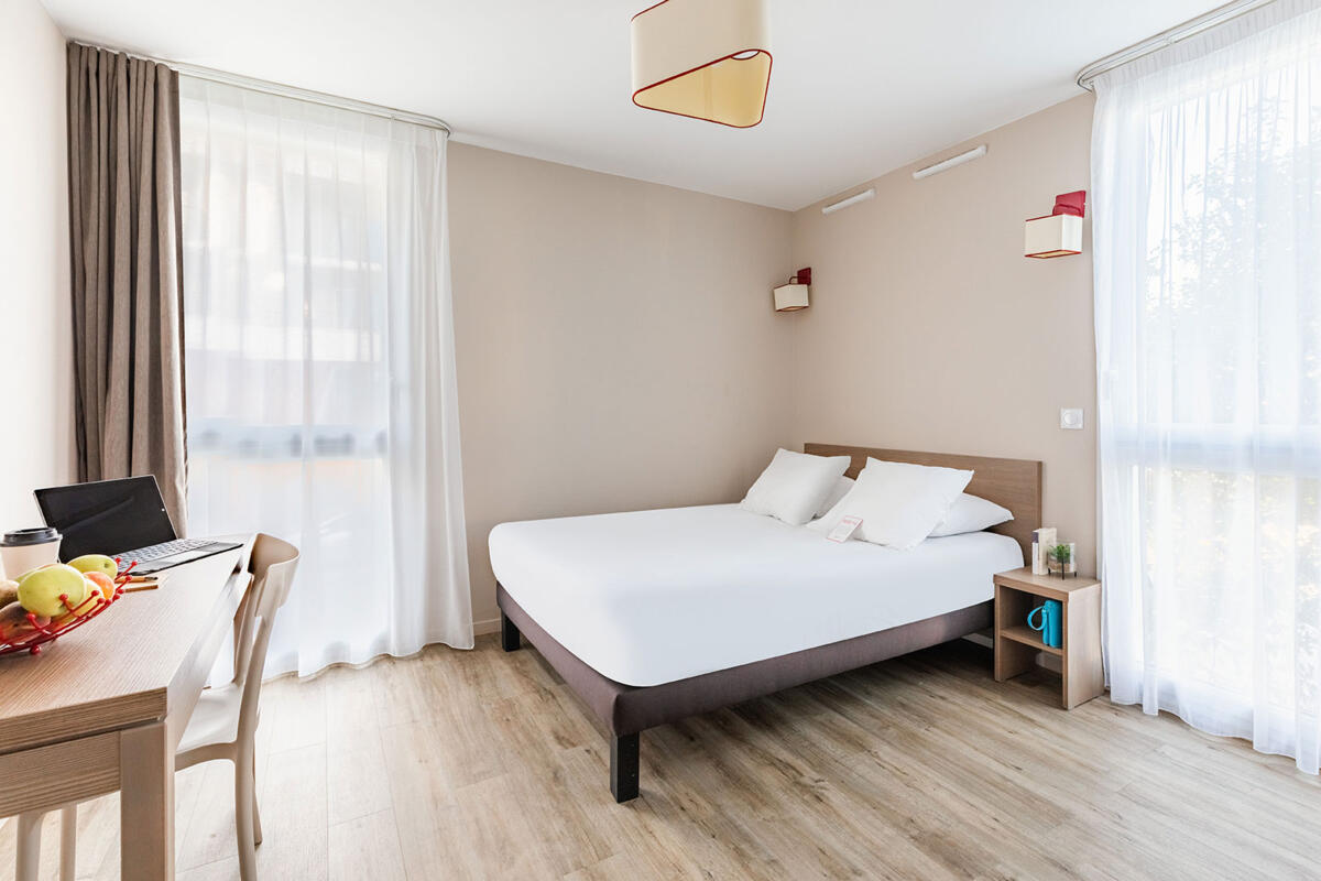 If you're traveling on business, you'll enjoy unrestricted access to an unlimited, high-performance wifi connection linked to the fiber optic network. All apartments are equipped with a workspace. Students will also appreciate the proximity of the Gavy Océanis campus, just a 10-minute walk away, and the IUT less than 15 minutes away.
