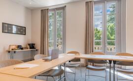 Organise your seminars, incentives and meetings at the appart-hotel Lyon Cité Internationale and benefit from a tailor-made service. Tell us your needs and we will manage your seminar from A to Z. Gather your guests in our 50 m² room and our 2 lounges of 40 and 60 m² that can be adapted to a 100 m² room. At your request, we can provide a video projector, a screen and a paperboard. You benefit from a complete à la carte offer, including accommodation, daylight meeting room and catering. During your stay, take advantage of the proximity of the Cité internationale de Lyon, its congress centre and its museum of contemporary art. Go for a daily jog in the flat hotel's fitness room or in the alleys of the Parc de la Tête d'Or.