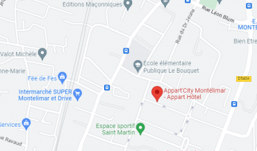 La céntrica situación de su apartahotel Montélimar le permitirá llegar fácilmente, sea cual sea su medio de transporte. Estará a 10 minutos a pie de la estación de tren SNCF y cerca de la parada de autobús "Saint-Martin", número 6. Si viene en coche, tome la salida 17 hacia Montélimar Norte o la 18 hacia Montélimar Sur en la autopista A7 (Autoroute du Soleil). El aeropuerto de Aviñón-Provenza está a 1 hora en coche y el aeropuerto internacional de Lyon Saint-Exupéry, a 1 hora y 45 minutos.