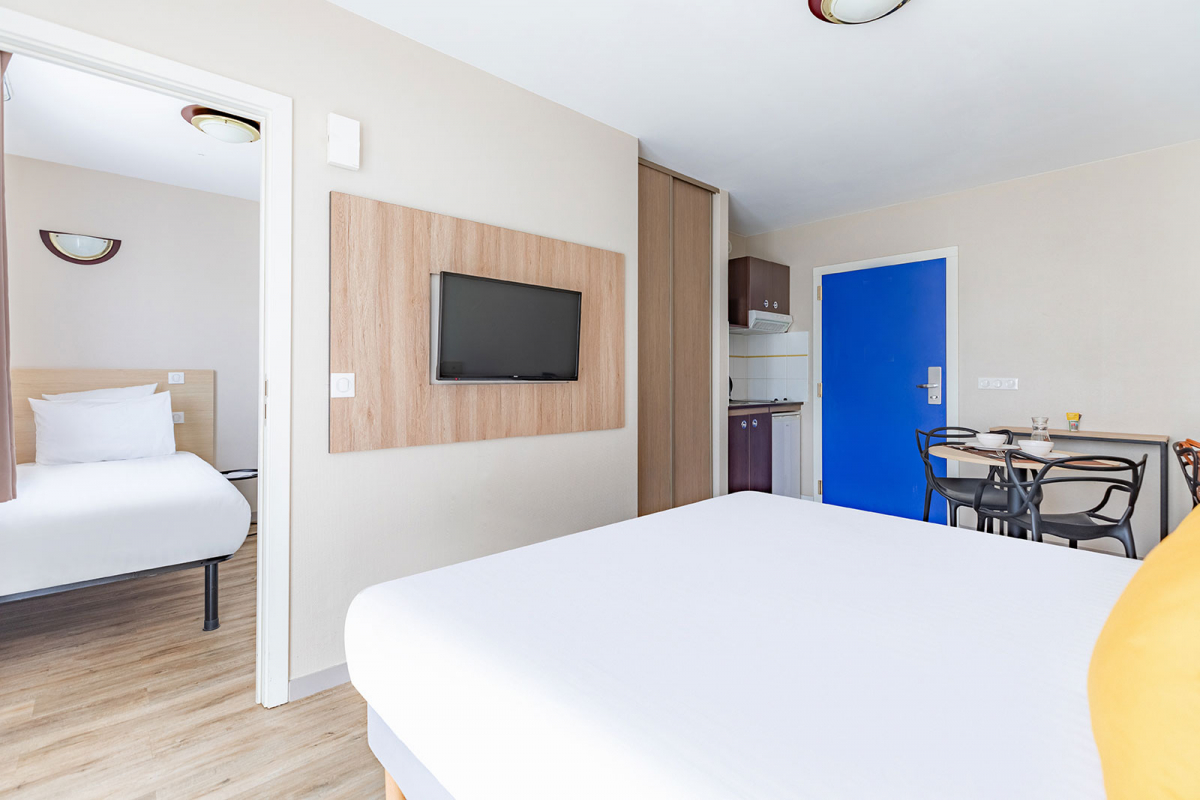 Séjournez dans des appartements confortablement meublés et indépendants. Votre appart-hôtel Arlon-Porte du Luxembourg vous propose des hébergements allant du studio fonctionnel à l’appartement familial 3 pièces, doté d’une capacité maximale de 6 personnes. Tous sont équipés d’un espace bureau, d’un écran LCD ainsi qu’une cuisine prête à l’emploi comprenant des plaques de cuisson, réfrigérateur, micro-ondes, bouilloire ou cafetière, et d’un lave-vaisselle. Les appartements 2 ou 3 pièces vous offrent davantage d’espace avec un agréable salon aménagé avec canapé convertible.