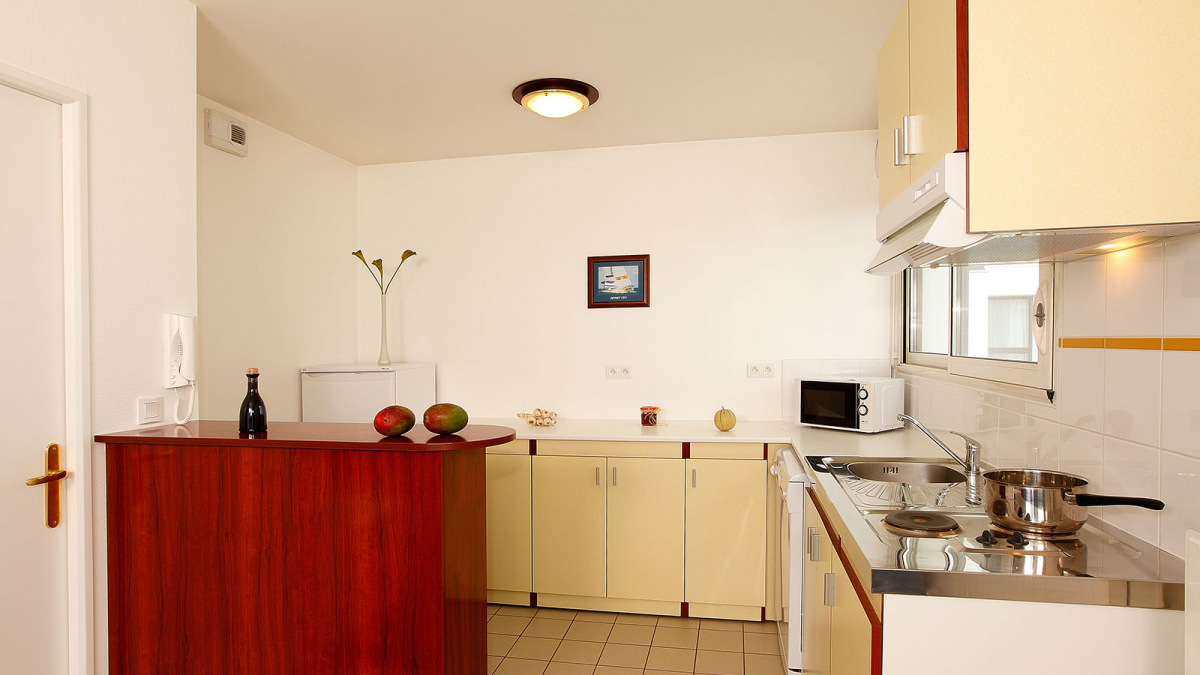 Vous aurez le choix parmi des studios fonctionnels, doubles ou twin, ou de spacieux appartements 2 à 3 pièces pouvant accueillir jusqu’à 6 personnes maximum. Chaque espace de vie est minutieusement conçu pour que vous passiez un moment reposant, avec tout le nécessaire à votre disposition. Comme à la maison, vous y trouverez un espace de travail ainsi qu’une cuisine parfaitement équipée comprenant plaques de cuisson, micro-ondes, cafetière ou bouilloire et réfrigérateur, sans oublier un lave-vaisselle dans les appartements.