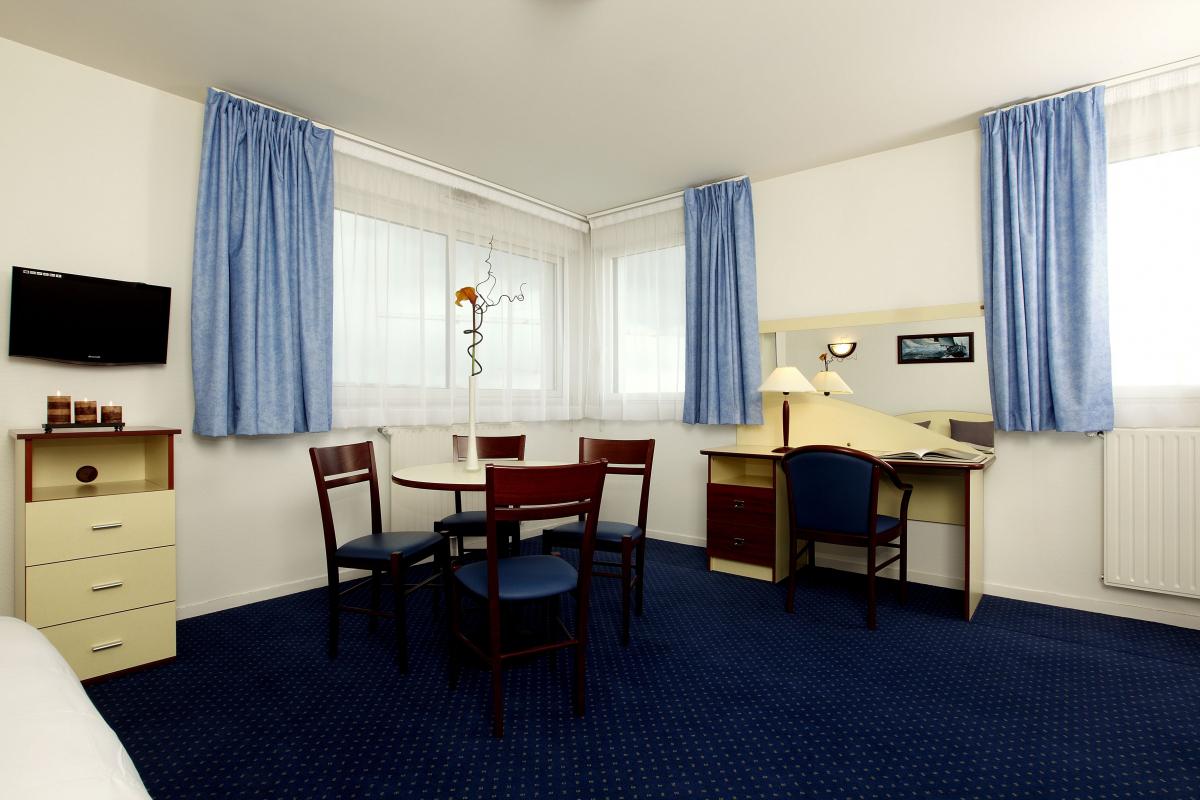 Votre appart-hôtel Rennes Beauregard bénéficie d’un emplacement stratégique, qui facilitera vos déplacements professionnels. Proche des grandes zones d’activités et du parc des expositions, vous serez idéalement situé, avec un accès proche de la rocade si vous venez avec votre propre véhicule. Tous les studios et appartements disposent d’un accès illimité au wifi très haut débit relié à la fibre, ainsi qu’un espace de travail aménagé. Tout est pensé pour optimiser vos journées de télétravail.