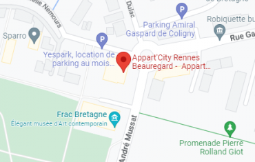 Que vous arriviez par vos propres moyens ou avec les transports en commun, vous n’aurez aucun mal à rejoindre votre appart-hôtel Rennes Beauregard. La gare TGV de Rennes ainsi que l’aéroport Rennes Bretagne ne se trouvent à 20 minute en voiture. Vous pourrez ensuite emprunter la ligne de bus 12 ou C4 qui vous mènera en bas de votre hôtel (arrêt Dulac à 3 minutes à pied).