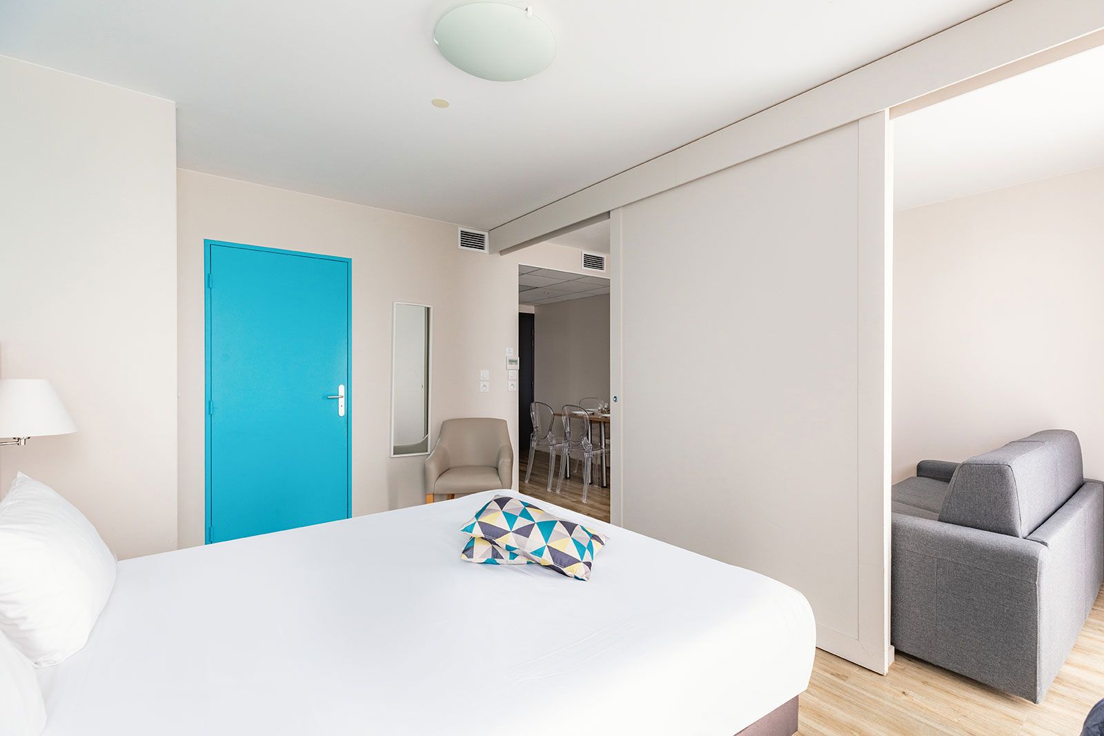 Fonctionnels et indépendants, vous séjournerez en studio pour 2 personnes ou en appartement 2 pièces pouvant accueillir jusqu’à 4 personnes. Entièrement meublés, les logements comprennent une cuisine équipée avec plaques de cuisson vitrocéramiques, réfrigérateur, micro-ondes, bouilloire ou cafetière, vaisselle et ustensiles de cuisine. Tout ce qu’il faut pour concocter de bons petits plats dans le confort de votre studio ou appartement. Ils sont également dotés d’une literie de qualité supérieure, d’un coin bureau, de nombreux rangements ainsi que de la climatisation réversible. Les appartements disposent d’un espace salon avec canapé convertible.