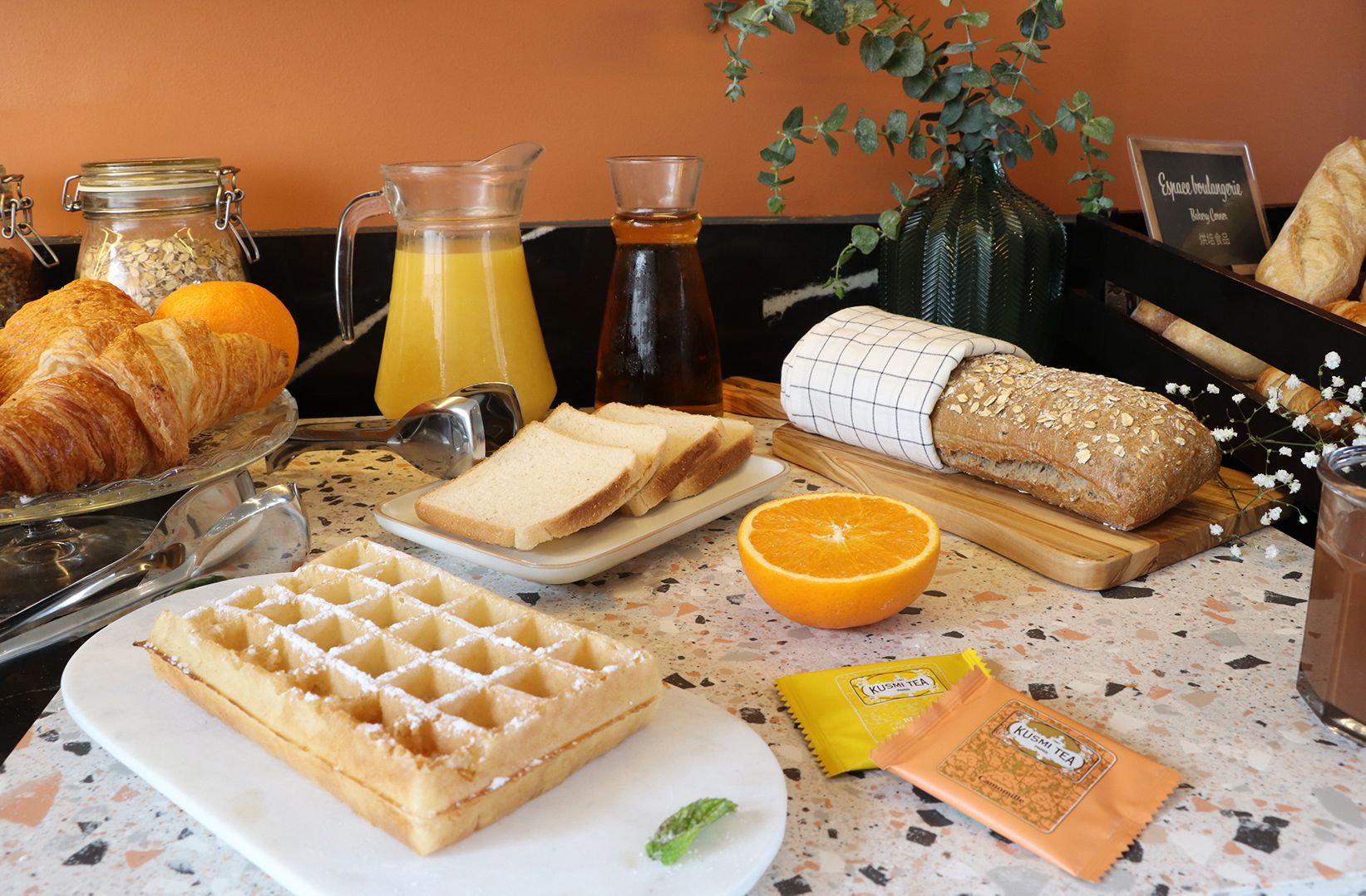 Servi sous forme de buffet, vous profiterez d’une grande variété de produits, du traditionnel croissant chaud – café, au petit-déjeuner à l’anglaise avec des options salées. Que vous soyez lève-tôt ou adepte de la grasse matinée, les horaires d’ouverture flexibles vous permettent de déguster votre petit-déjeuner quand vous le souhaitez.