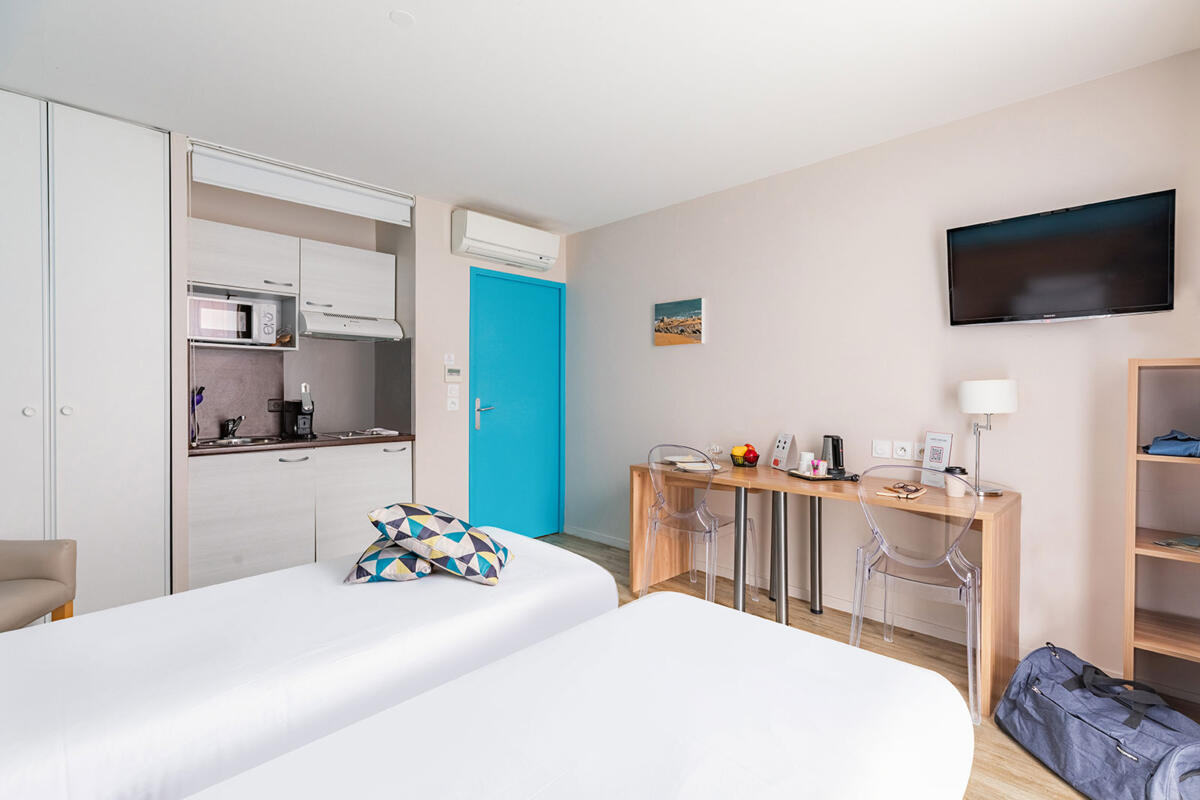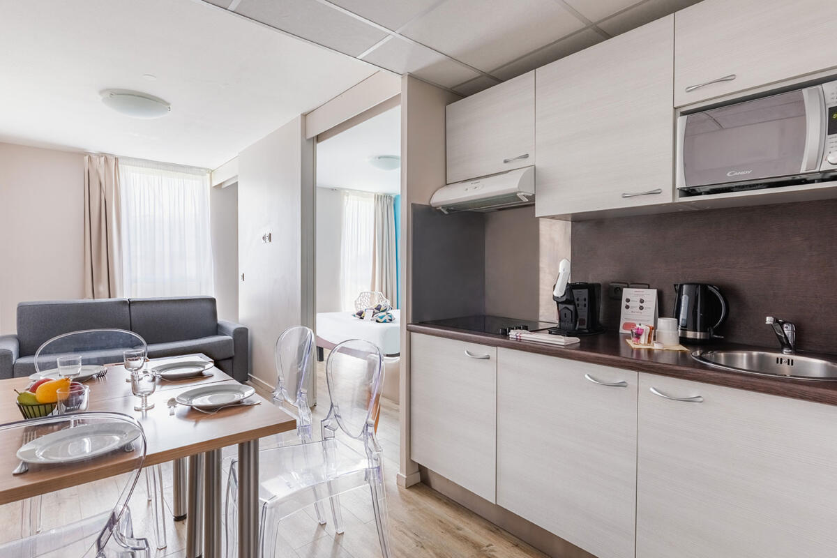 L'appart'hôtel Vannes propose des appartements spacieux avec une capacité d'accueil jusqu'à 6 personnes. Ces appartements sont dotés de plusieurs chambres, d'une salle de séjour séparée et d'une kitchenette entièrement équipée.