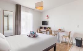 L'appart'hôtel Perignan Centre gare propose des appartements spacieux avec une capacité d'accueil jusqu'à 6 personnes. Ces appartements sont dotés de plusieurs chambres, d'une salle de séjour séparée et d'une kitchenette entièrement équipée.