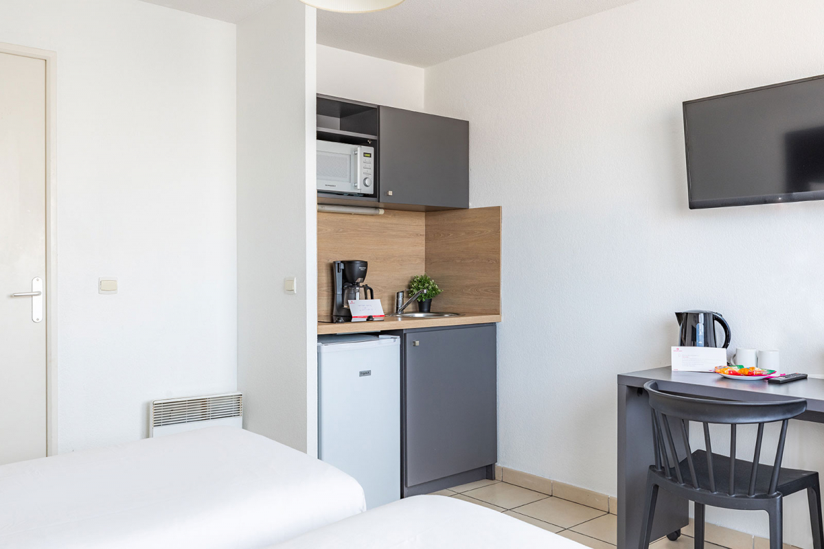 L'appart'hôtel La Ciotat propose des appartements spacieux avec une capacité d'accueil jusqu'à 4 personnes. Ces appartements sont dotés de plusieurs chambres, d'une salle de séjour séparée et d'une kitchenette entièrement équipée.