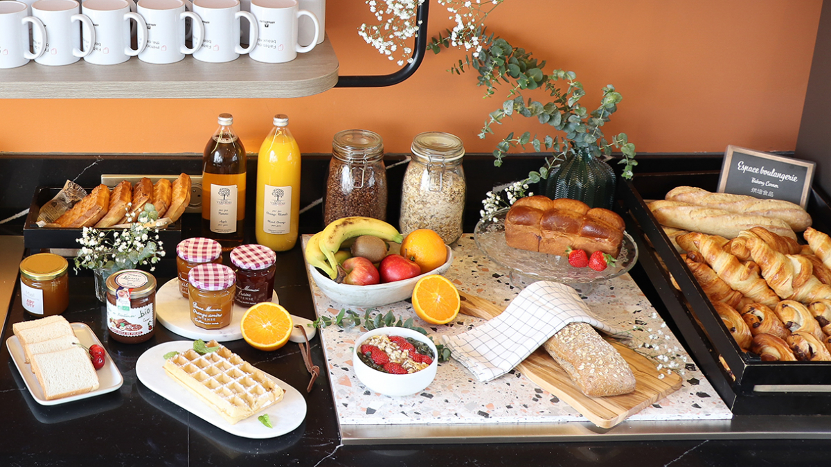 Servi sous forme de buffet, vous profiterez d’une grande variété de produits, du traditionnel croissant chaud – café, au petit-déjeuner à l’anglaise avec des options salées. Que vous soyez lève-tôt ou adepte de la grasse matinée, les horaires d’ouverture flexibles vous permettent de déguster votre petit-déjeuner quand vous le souhaitez.