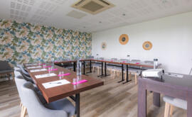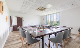 Pour vos séminaires, cocktails, réunions, congrès, incentives et autres événements personnels ou professionnels, profitez d'une prestation sur mesure à l'appart-hôtel Nantes Ouest Saint Herblain. Exposez-nous vos besoins et nous organisons votre séminaire de A à Z. Recevez vos invités dans notre salle de réunion de 50 m2, avec vue sur le jardin et le lac voisin. Durant votre événement, disposez du wifi gratuit et illimité, d’espaces de pause, de matériel professionnel et d’un parking offert en journée. Pour vos repas, de nombreux restaurants se trouvent aux alentours. Au cours de votre séjour, empruntez le tramway face à l'appart-hôtel et rejoignez le centre-ville de Nantes. Découvrez les fascinantes Machines de l'île, le musée des Beaux-Arts et le château des ducs de Bretagne.